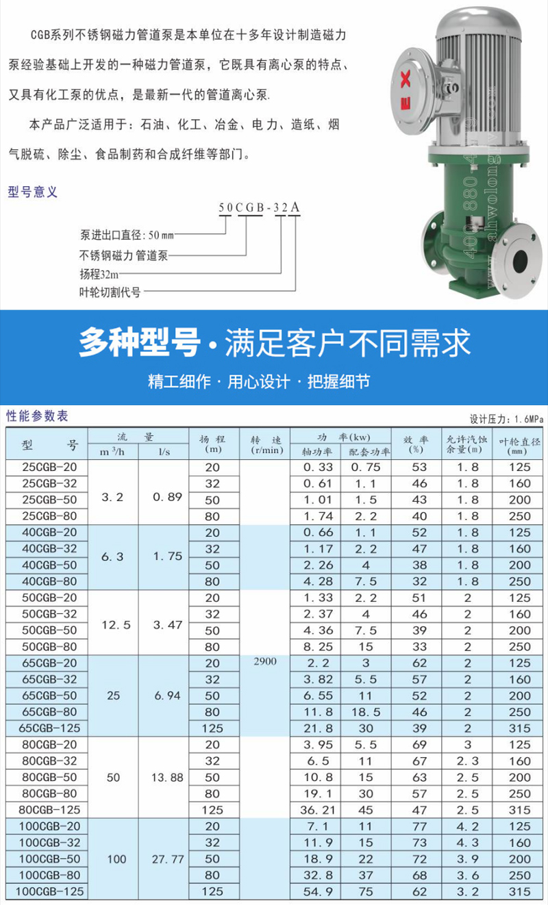 CGB不銹鋼管道磁力泵